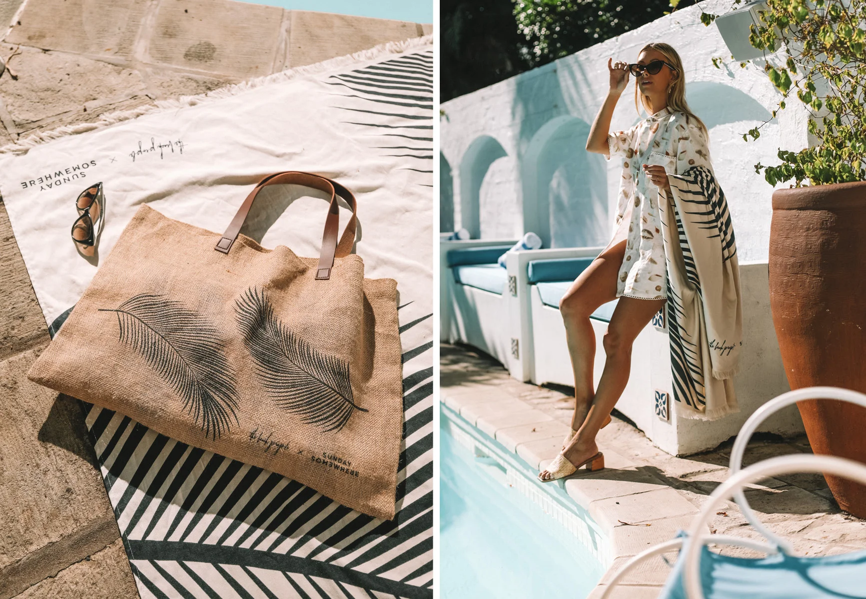 Inspired by lazy days beneath the palms, we introduce to you our exclusive three-piece capsule collection designed in collaboration with Sunday Somewhere. Featuring the Palm Travel Towel, Palm Jute Bag and our first foray into eyewear, the Palm Sunglasses, all designed with a subtle hand drawn palm print as an ode to the seaside minimalist. View the campaign, shot at one of our favourite local spots with the perfect muse, Lisa Smith, and find out how this beautiful collaboration was born…